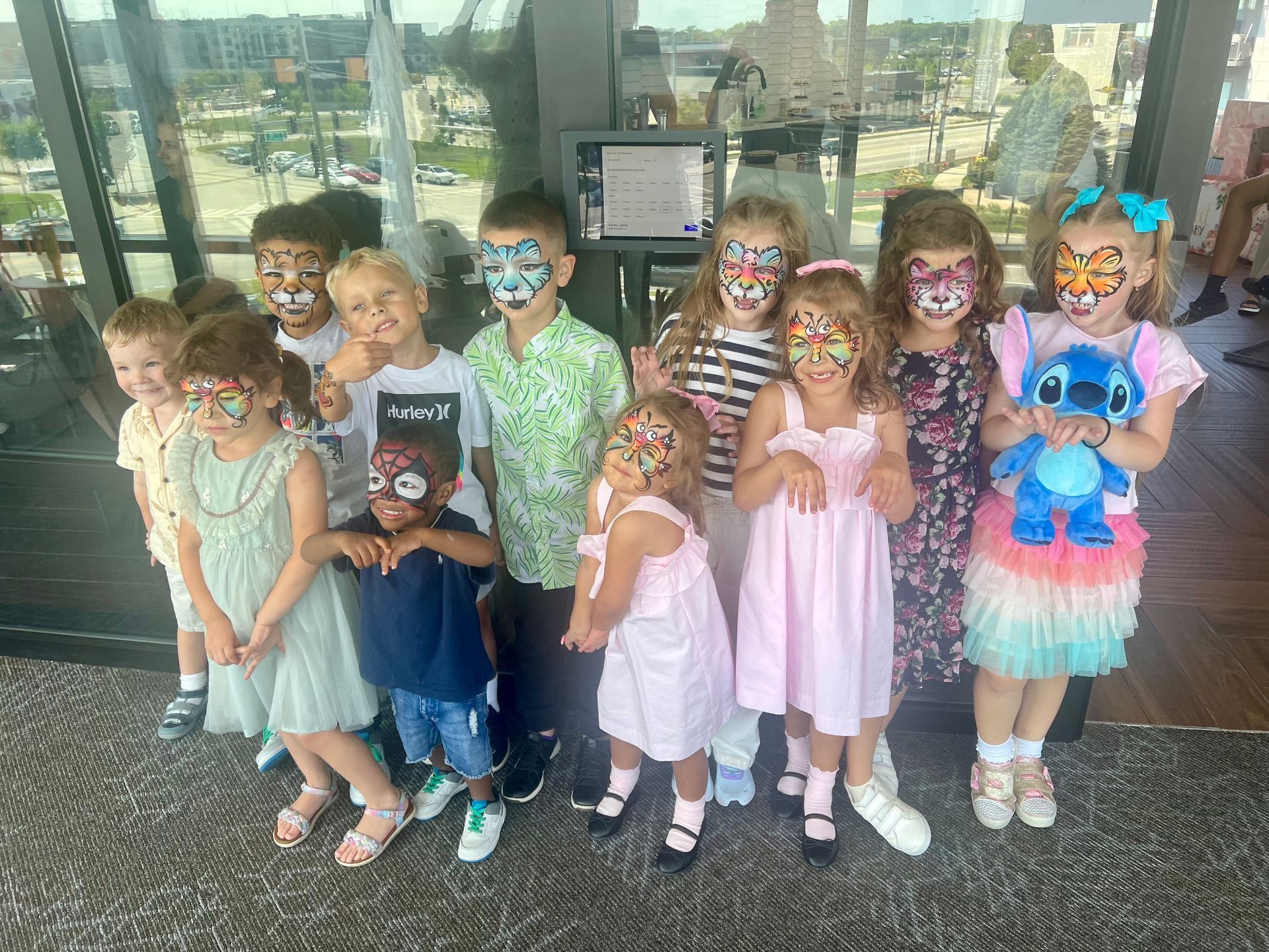 Hire one artist (or a few) to completely make over your party animals with balloon art and face painting. One artist can paint and twist about 10-12 kids per hour. We typically have a 1.5 hour minimum unless you are hiring 2 people or have a small group. We do have discounted package rates for two artists.