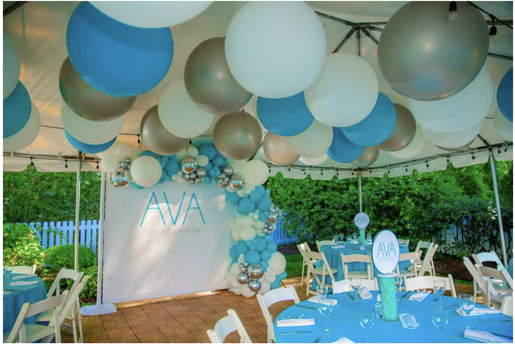 Transform the whole room with ceiling balloons and balloon walls.