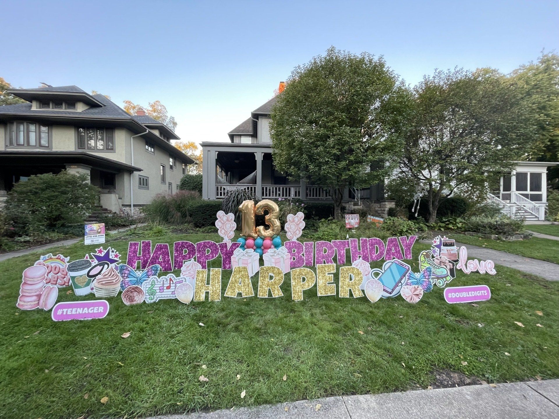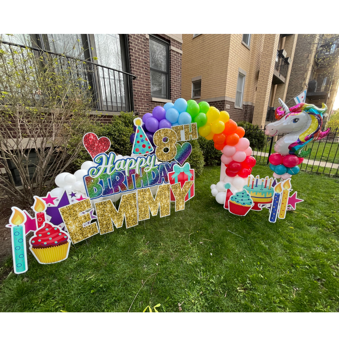 Yard displays became the ever popular way to celebrate during the pandemic, but that doesn't mean we have to stop. If you want to create the ultimate surprise, fill their yard with balloons and/or yard cards.